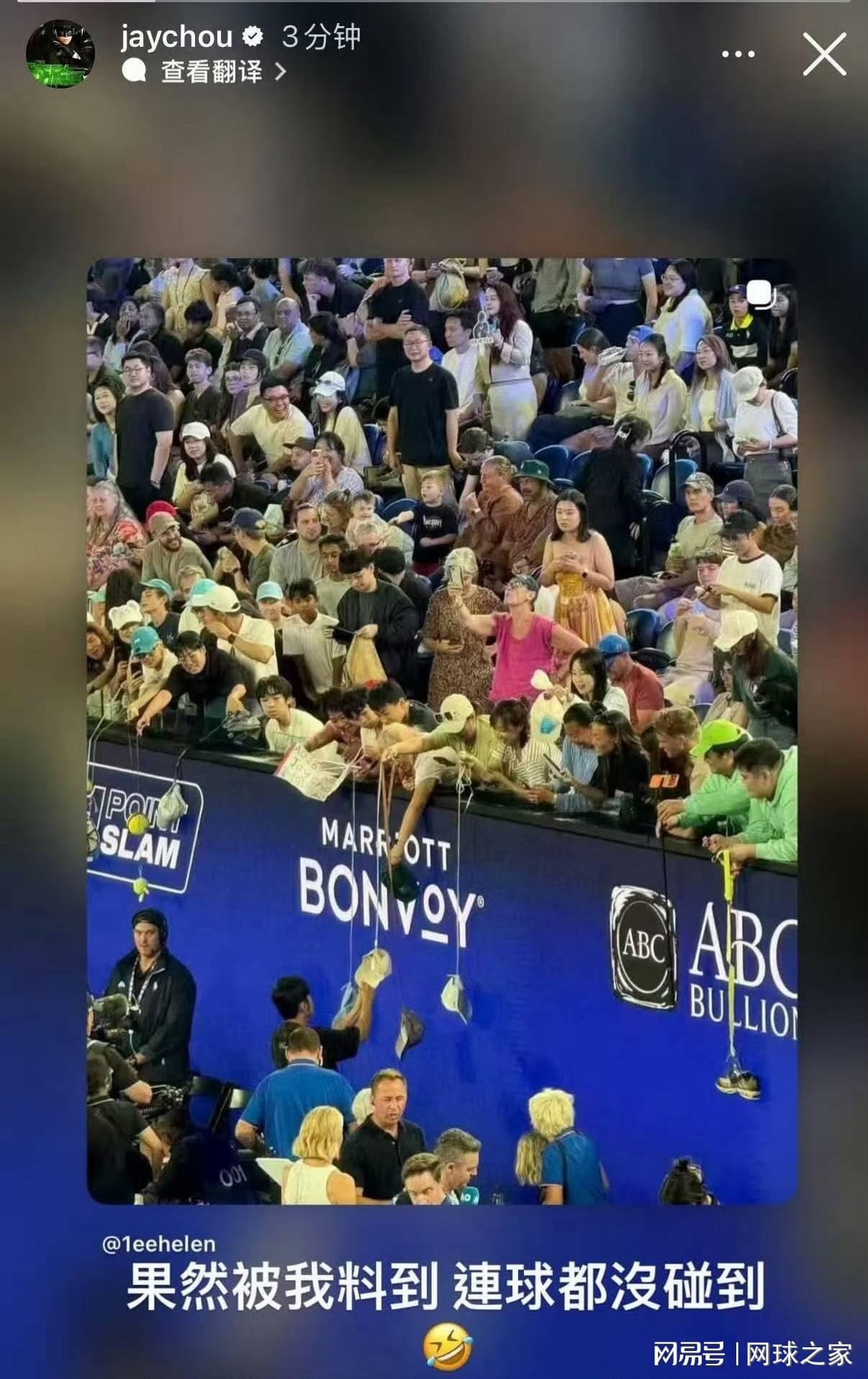 跨界参赛者同样引人注目,华语流行天王周杰伦作为外卡选手参赛,他的首轮对手是维多利亚州业余冠军彼得·约维奇。周杰伦赛前就在社交媒体上幽默表示:“可能连球都碰不到就出局。”这一预言最终竟然成真,他在第一轮被对手直接Ace终结,球都没碰到就结束了本届一球致胜比赛的旅程。赛后,他幽默地表示:“果然被我料到,我连球都没碰到。我能做的只有在场边给大家签名了。”